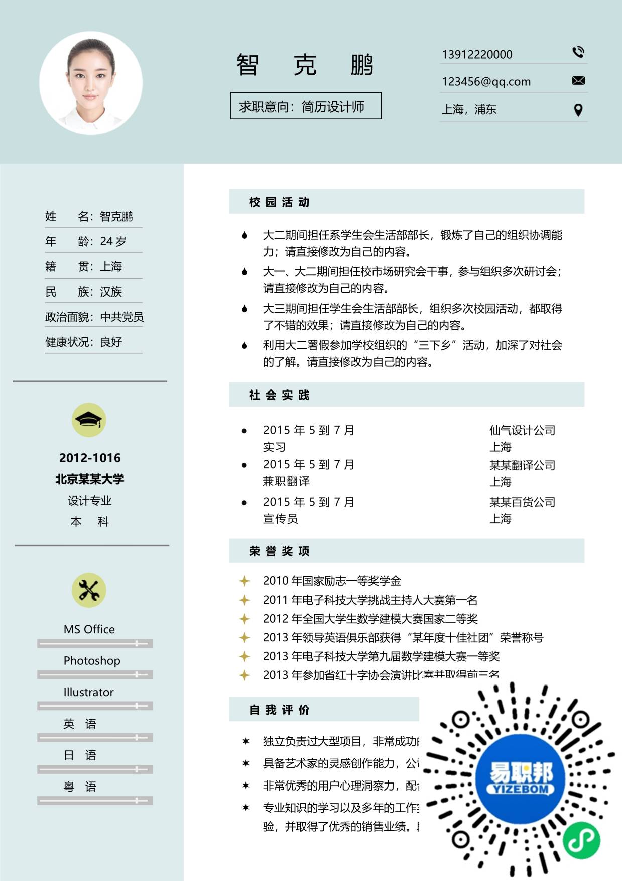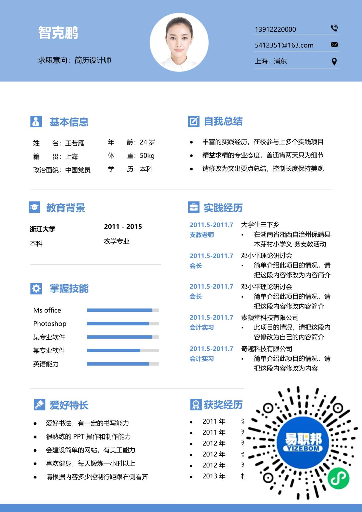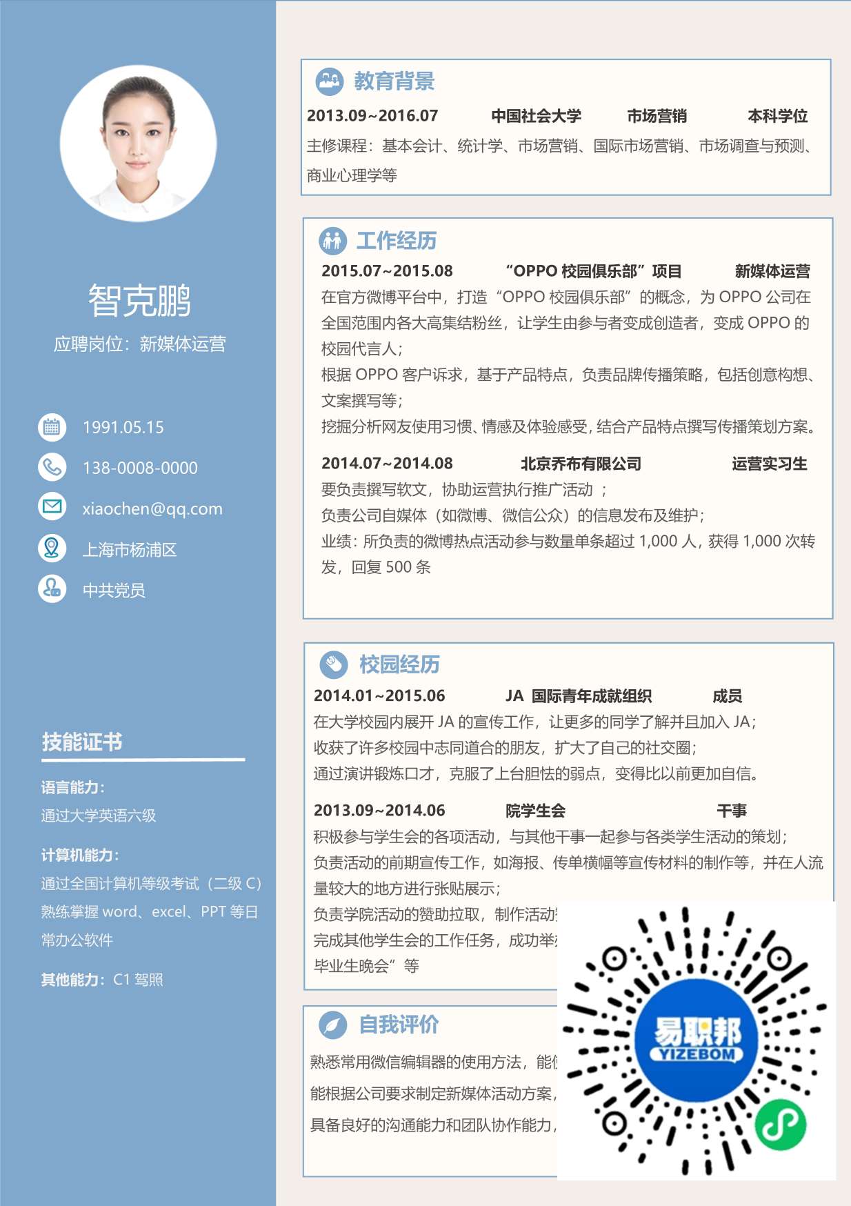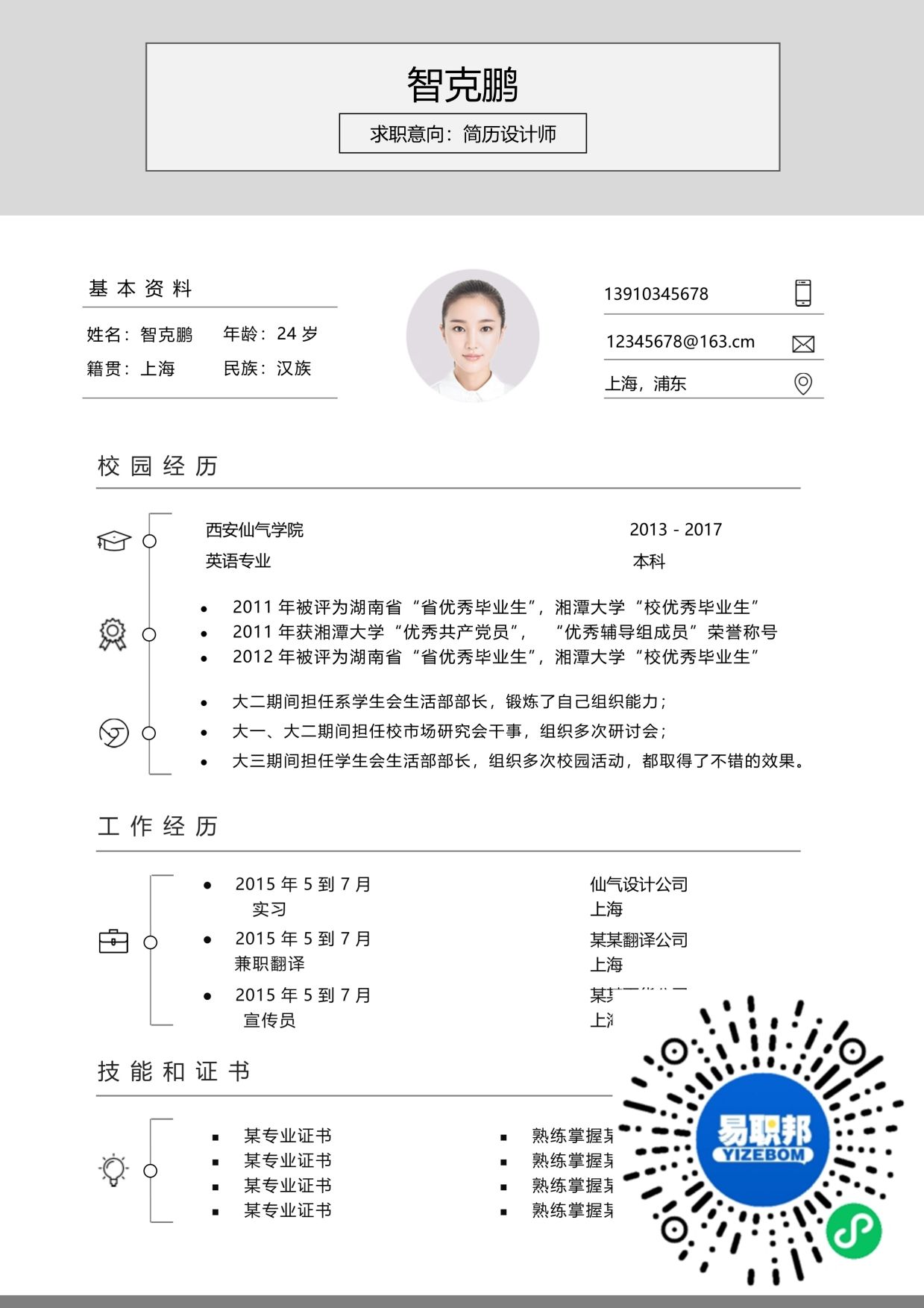 文艺简历模板下载17