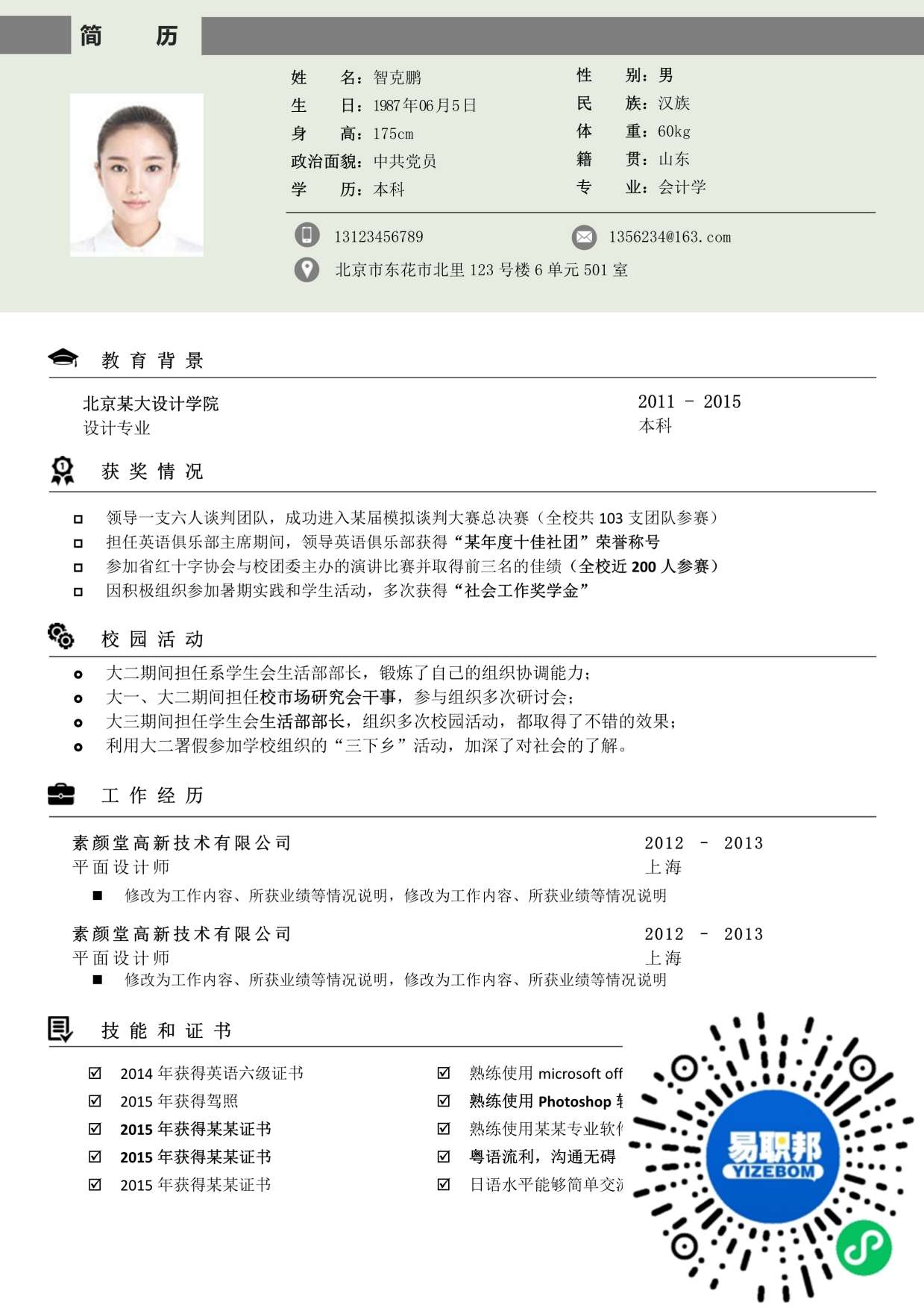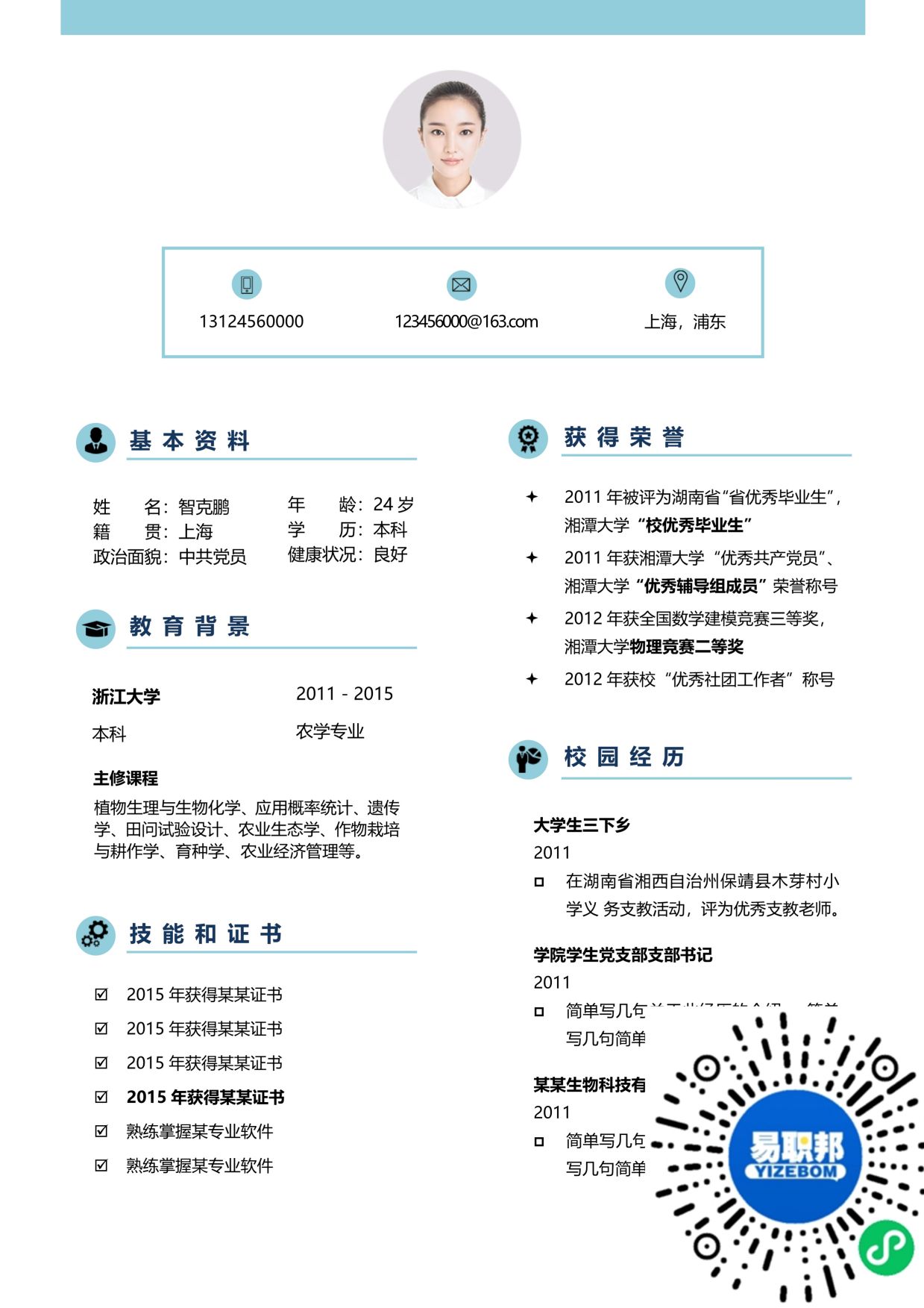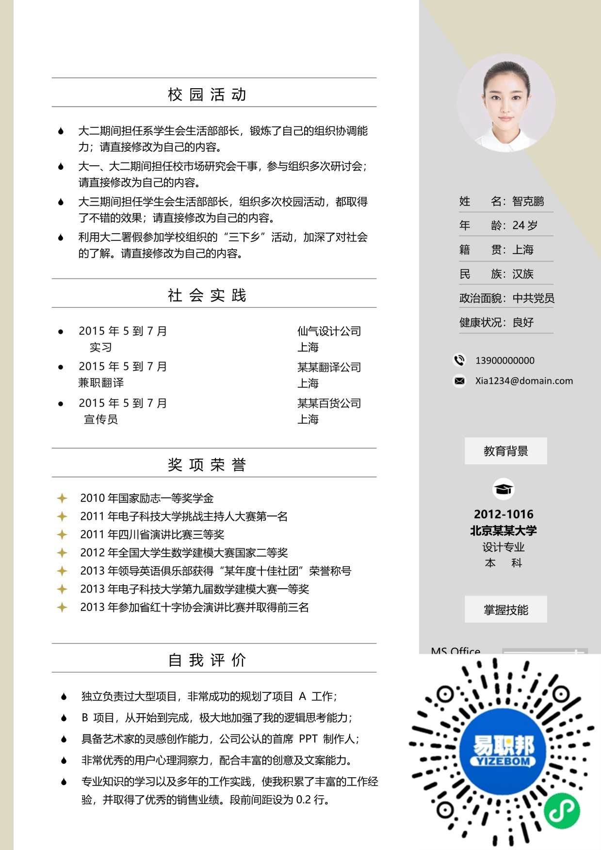 文艺简历模板下载01