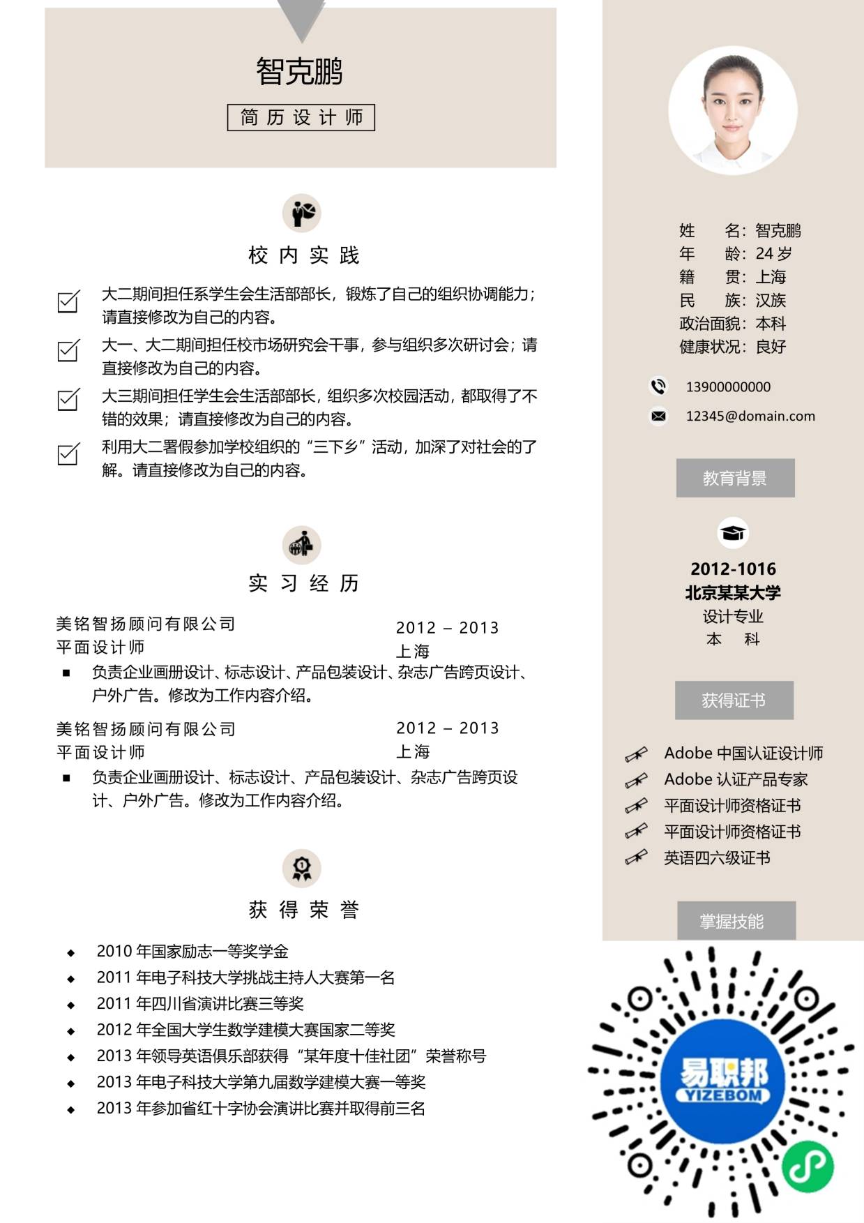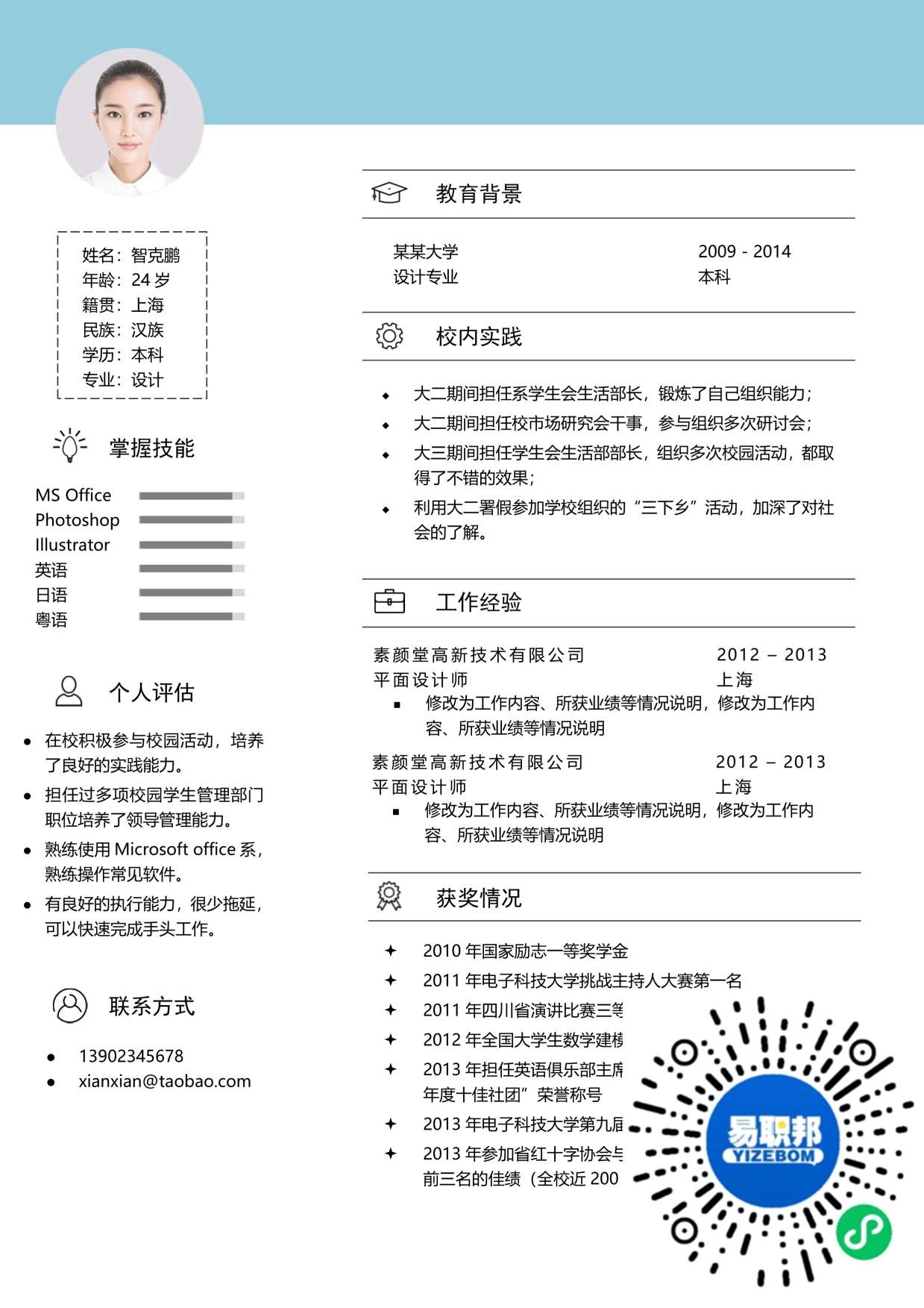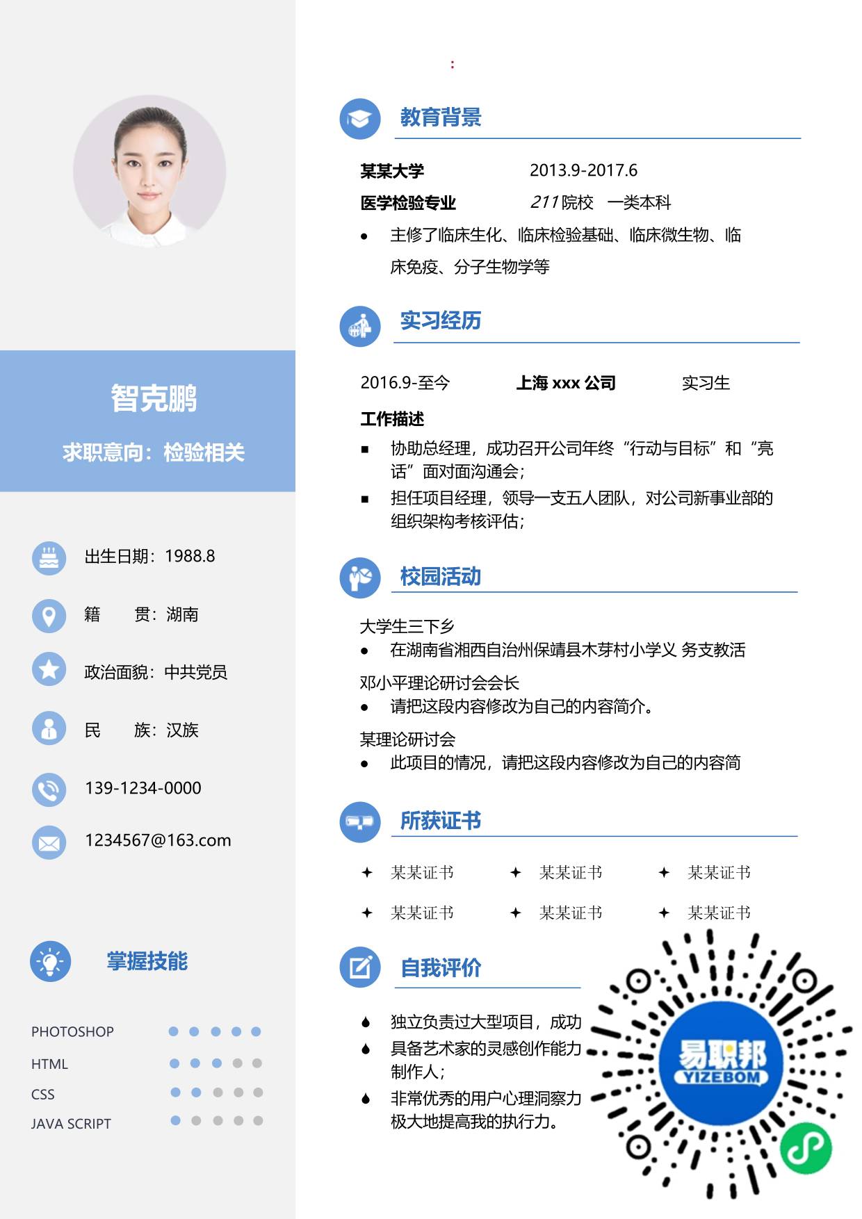 文艺简历模板下载01