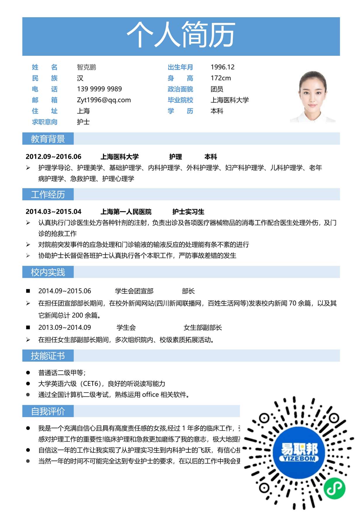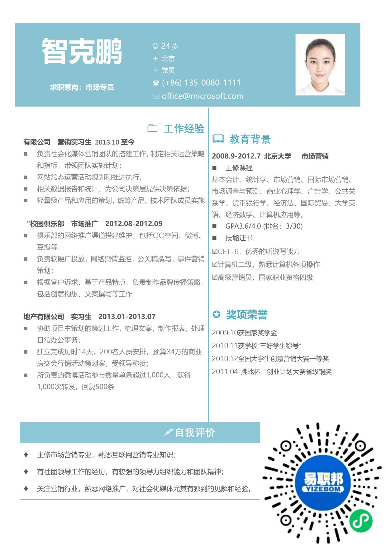 文艺简历模板下载10