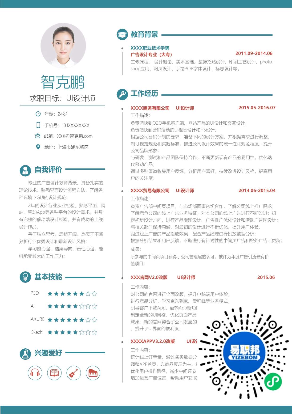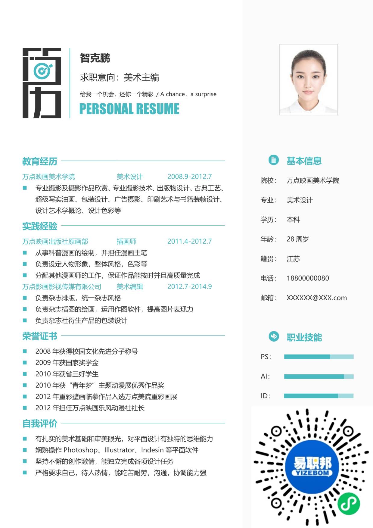 文艺简历模板下载20